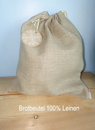 Brotbeutel aus 100 % Leinen Swissmade Hält Ihr feines Brot länger frisch Grösse 30 cm mal 34 cm Handbedruckt waschbar bei 40 ° |